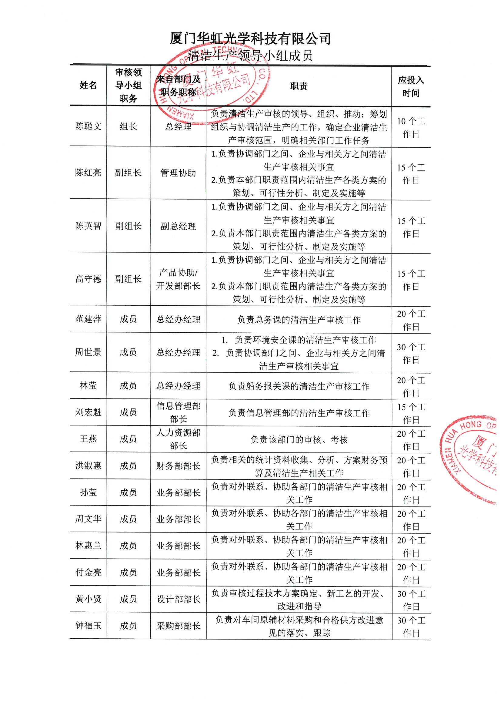 廈門(mén)華虹光學(xué)科技有限公司關(guān)于成立清潔生產(chǎn)審核領(lǐng)導小組的通知