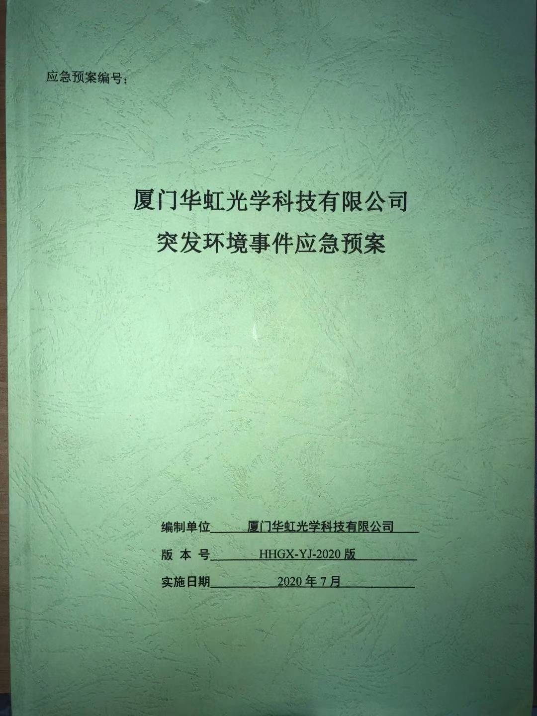 廈門(mén)華虹光學(xué)科技有限公司突發(fā)環(huán)境事件應急預案